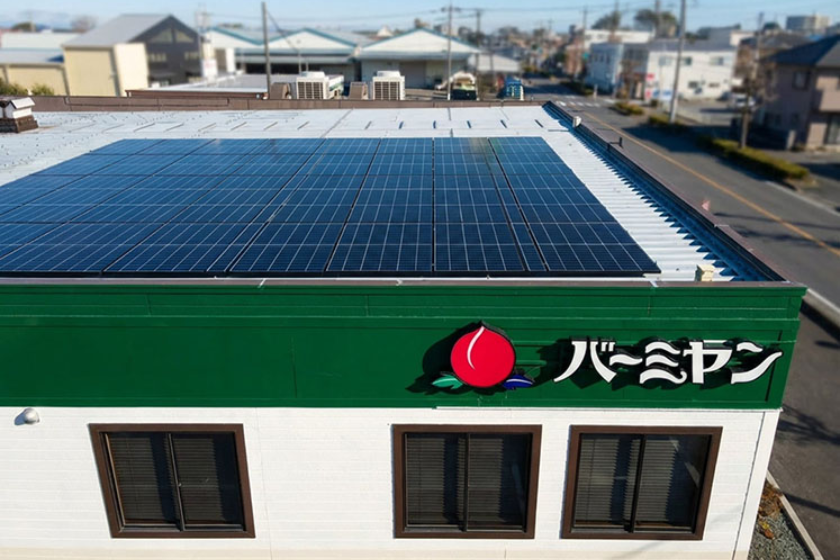 すかいらーくHDは、鈴与商事が提供するオンサイトPPAサービスにより、まずはバーミヤンの「甲府下飯田店」(山梨県甲府市)、「三郷戸ヶ崎店」(埼玉県三郷市)、「宇都宮徳次郎店」(栃木県宇都宮市)の3店舗に、太陽光発電設備(出力39kW・年間発電量4万6227kWh)を導入した。