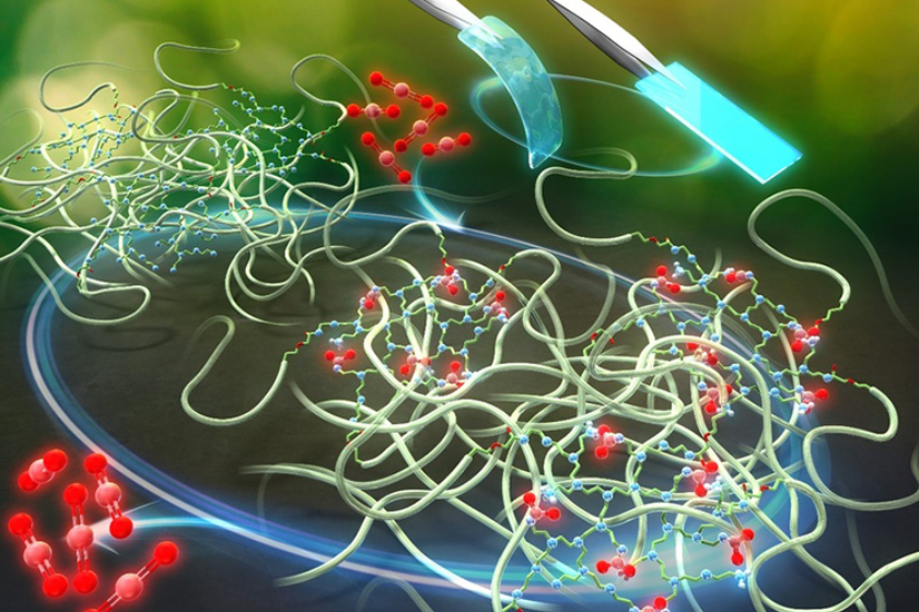岐阜大学など国公立4大学による研究グループは11月12日、CO2を吸収すると硬化し強靭なプラスチックに変化するゴム(エラストマー)を発明したと発表した。「材料の機能制御のためのCO2利用」という新しい視点でのCO2用途について可能性が広がる研究成果で、たとえば、CO2によって輝きを増す性質を利用すれば光学的な情報の記録・消去が可能な材料として活用することが期待できるという。