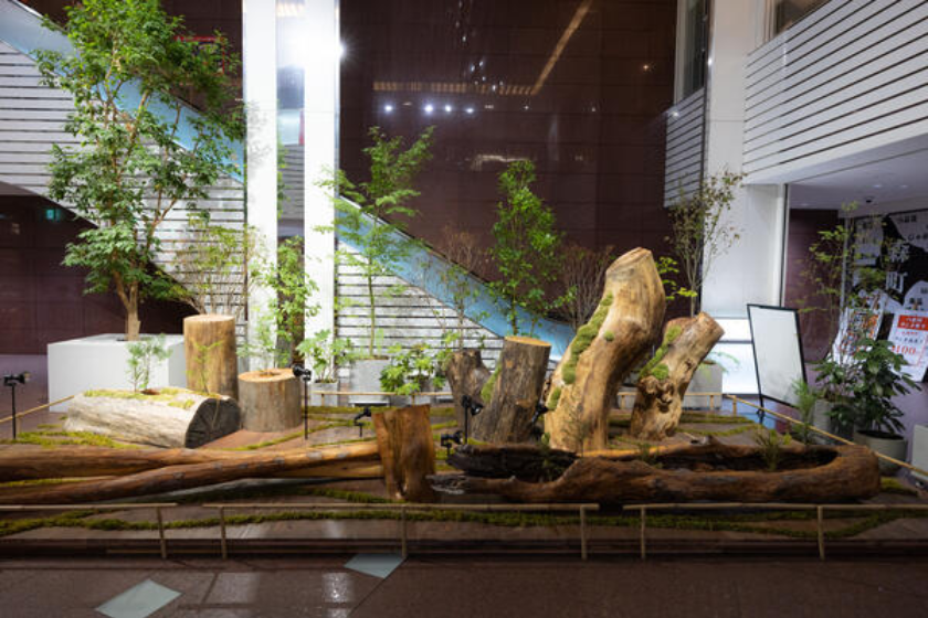 廃材などの木材を利用した庭を設置 自然界の循環により森を再現